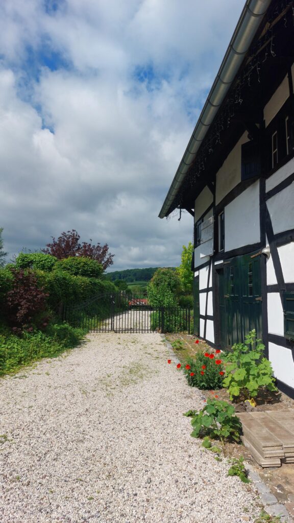Volgens het Van Dale Woordenboek wordt onder vakwerk verstaan: de manier van bouwen waarbij de wanden zijn samengesteld uit een geraamte van houten balken dat opgevuld wordt door een met leem bestreken vlechtwerk of met metselwerk. In het Zuid Limburgse Heuvelland zijn er vele voorbeelden van te vinden, vaak gelegen op fraaie locaties en veelal boordevol karakter. Aanvang 18e eeuw, inmiddels al meer dan 320 jaar geleden, is een groot vakwerkhuis met geschoord dakoverstek gebouwd in het charmante dorp Mechelen. Het mag met recht een pracht exemplaar van een vakwerkhuis genoemd worden, door de eeuwen heen is er steeds met liefde voor gezorgd én er is veel aandacht geweest voor de authenticiteit van het object.