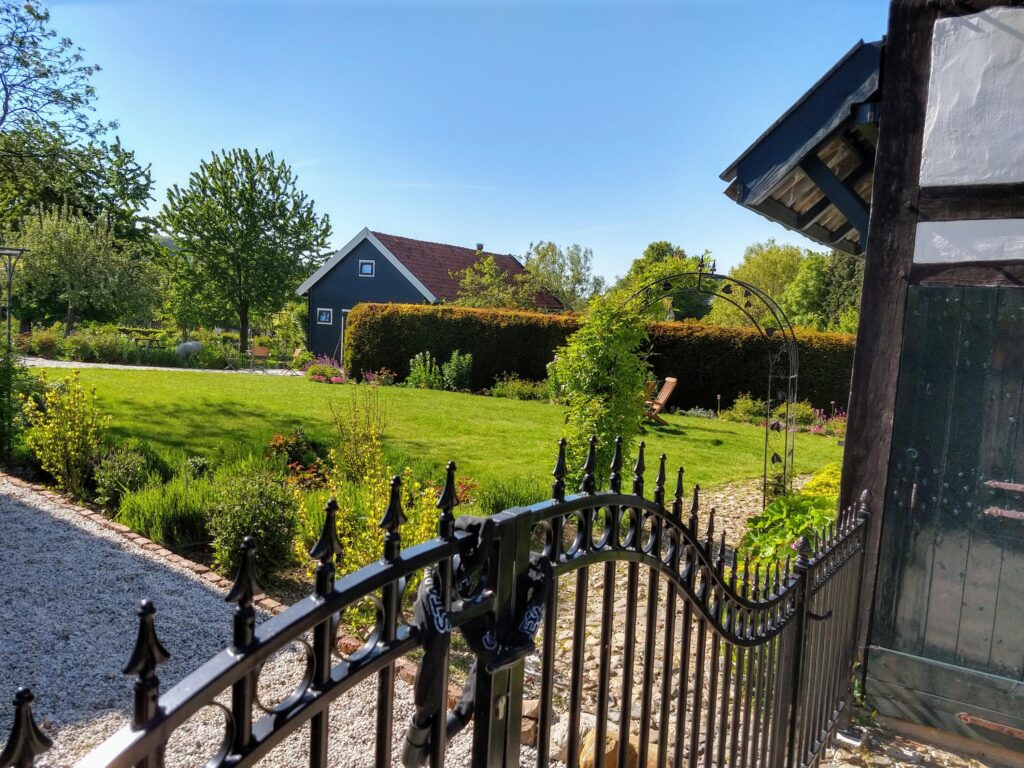 Ook de buitenruimte van dit object is royaal bemeten met een totaal perceeloppervlak van 3.483 m2 omvattende het erf, de tuin met terras en de huisweide met fruitbomen die direct aansluit. Deze vakwerkboerderij ligt verscholen van de Commandeurstraat aan een klein hofje met historische bebouwing, een heel rustige ligging en gesitueerd op zuidwest. Aan de voorzijde ligt het erf met een brede kiezeloprit die toegang geeft naar achterom, op het voorerf is alle ruimte om een gezellig zitplekje te creëren waar je kunt genieten van het zonnetje. Aan de achterzijde van de woning ligt de privacyvolle tuin met terras, overdekte buitenkeuken en zitgelegenheid, gazon en streek eigen aanplant. Nog een belangrijk pluspunt is het bijgebouw op het achtererf, deze compleet vernieuwde schuur met overdekt terras is de ideale plek voor een atelier of om je lekker terug te trekken in alle rust en de groene ruimte van je eigen huisweide. Deze schuur beschikt over alle voorzieningen zoals elektra, verwarming en sanitair.